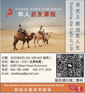 列治文救世軍教會中文堂誠摯地邀請你加入到我們當中,